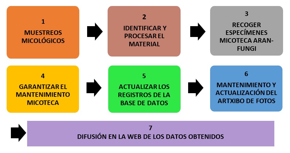 Su objetivo principal es cubrir el vacío de conocimiento existente sobre los hongos en el territorio guipuzcoano. De esta manera, se tratará de mejorar el conocimiento de la biodiversidad de los hongos autóctonos para una gestión más eficiente y, por lo tanto, transmitir propuestas para la adecuada gestión y/o conservación del estado, interés o amenaza de los especímenes y de sus hábitats.