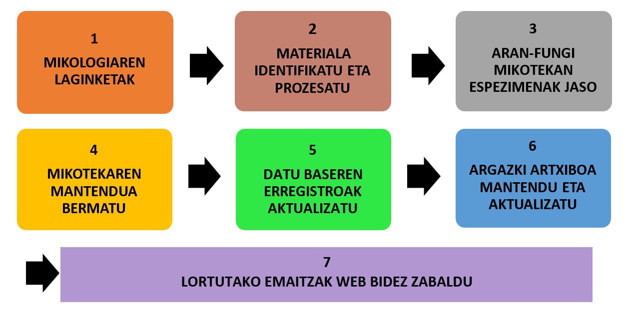- Mikologiaren ezagutza sustatu, ingurunea ikertuz eta, pertsonak eta erakundeak zientzia mikologikoan aholkatuz.
