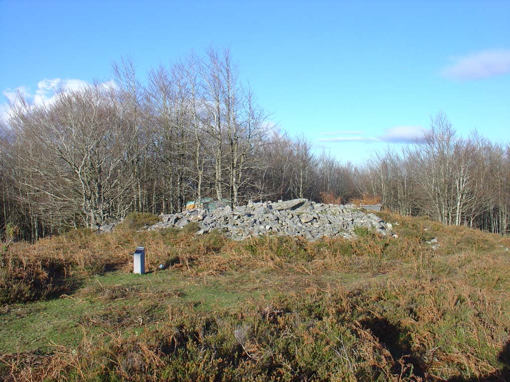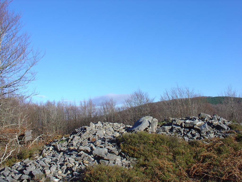 13 eta 15 m arteko diametroa eta 2 m-ko gehienezko altueradun tumulua duen trikuharri luze itxia da. Erdialdean ganbararen 5 harlauza aurkitzen dira, horietako 2 etzanda, sakonune baten barruan. Harlauzek 2,9 x 1,6 x 0,3 m-ko estalkia eusten dute. Ganbaratik 2 m IM-ra, tumuluaren gainean, beste harlauza bat dago. Eraikuntzan erabilitako materialak bertako kareharriak dira.