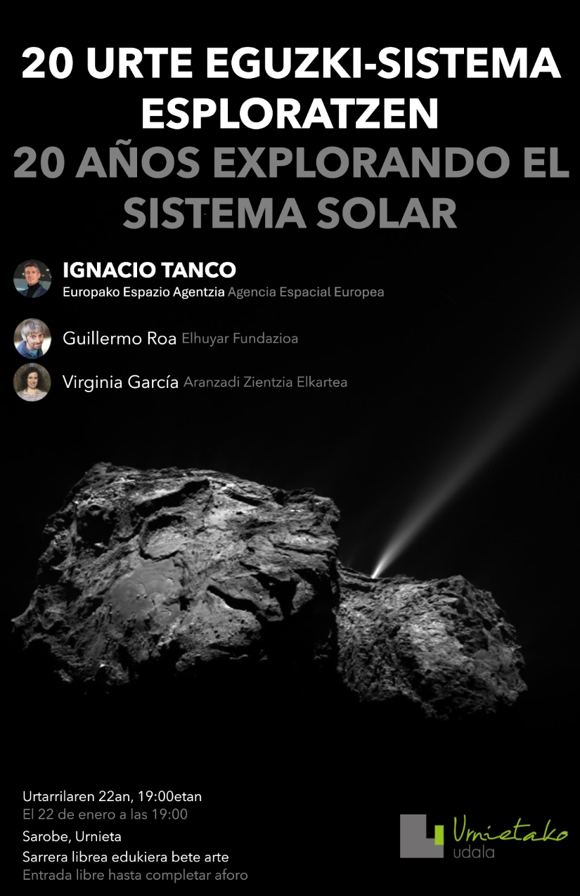 Los y las amantes del espacio y de los viajes espaciales tienen una cita ineludible el 22 de enero en el centro de artes escénicas de Sarobe a las 19:00. El conferenciante era nada más y nada menos que el urnietarra Ignacio Tanco, jefe de sección, misiones sistema solar interior en la ESA (Agencia Espacial Europea). Tanco, que actualmente reside en Alemania, nos ofrecerá su visión y experiencia sobre la evolución durante estos últimos veinte años en la exploración del sistema solar.