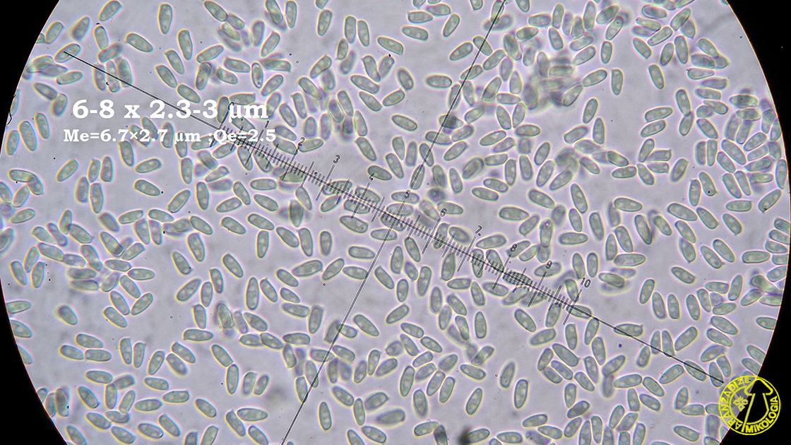 Microscopía: esporas cilíndricas, lisas, hialinas, de 7-9 x 2-3 µm.
