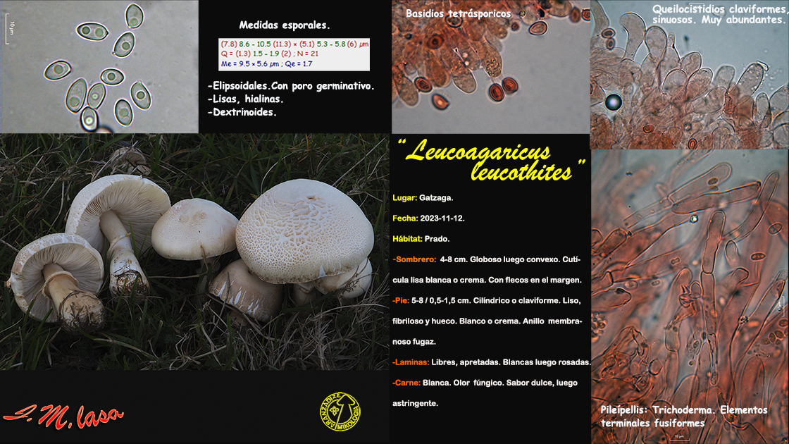 Microscopía: esporas elípticas, lisas, hialinas, de 7,5-10 x 4,5-6 µm.