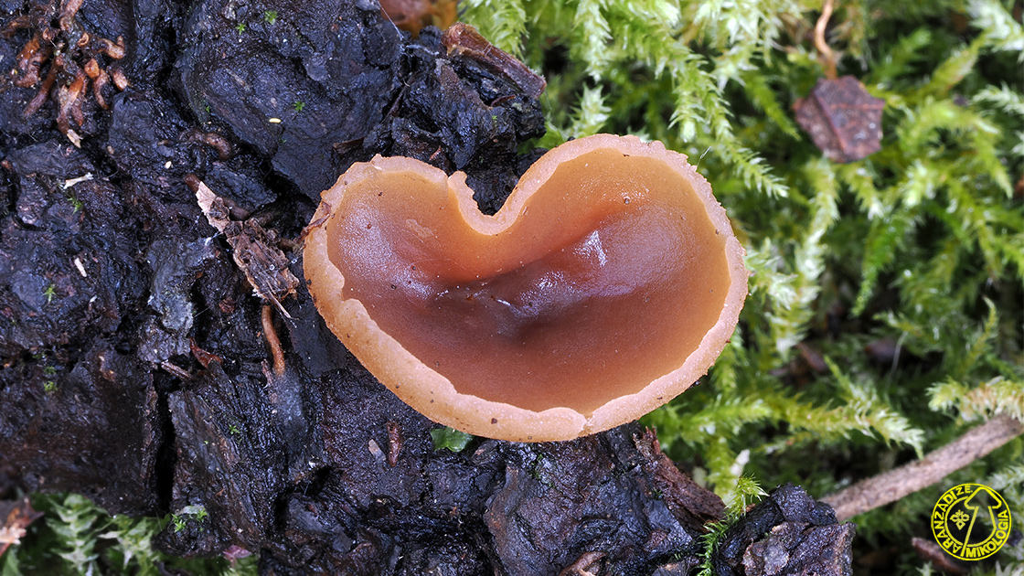 Ascoma: fructificaciones sésiles, cupuliformes al principio, luego ligeramente aplanadas, de 2-4 cm de Ø, himenio liso de color ocre pálido, cara externa blanquecina, ligeramente furfurácea-pruinosa.