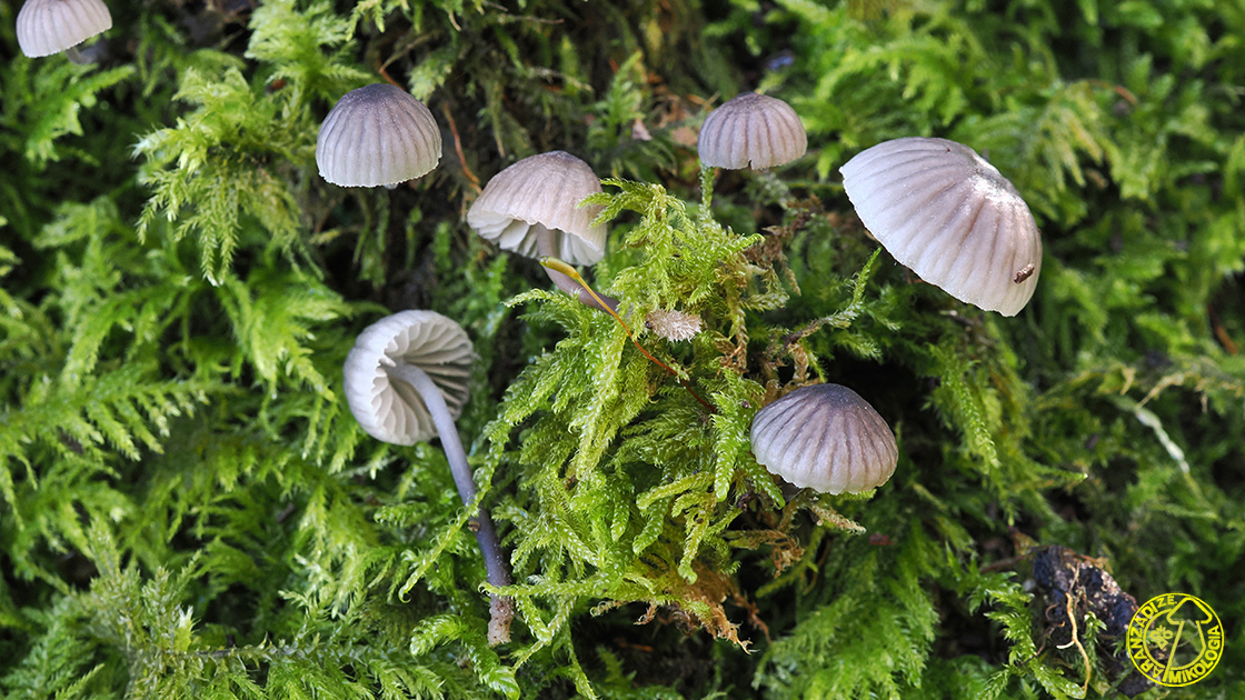 Basidioma: 0,5-1 cm-ko Ø-ko txapela, hemisferikoa, ildoduna eta azal lausodunekoa. Urdin-more iluna ongi hidratatutako ale gaztetan, gero gris urdinxka zurbila.