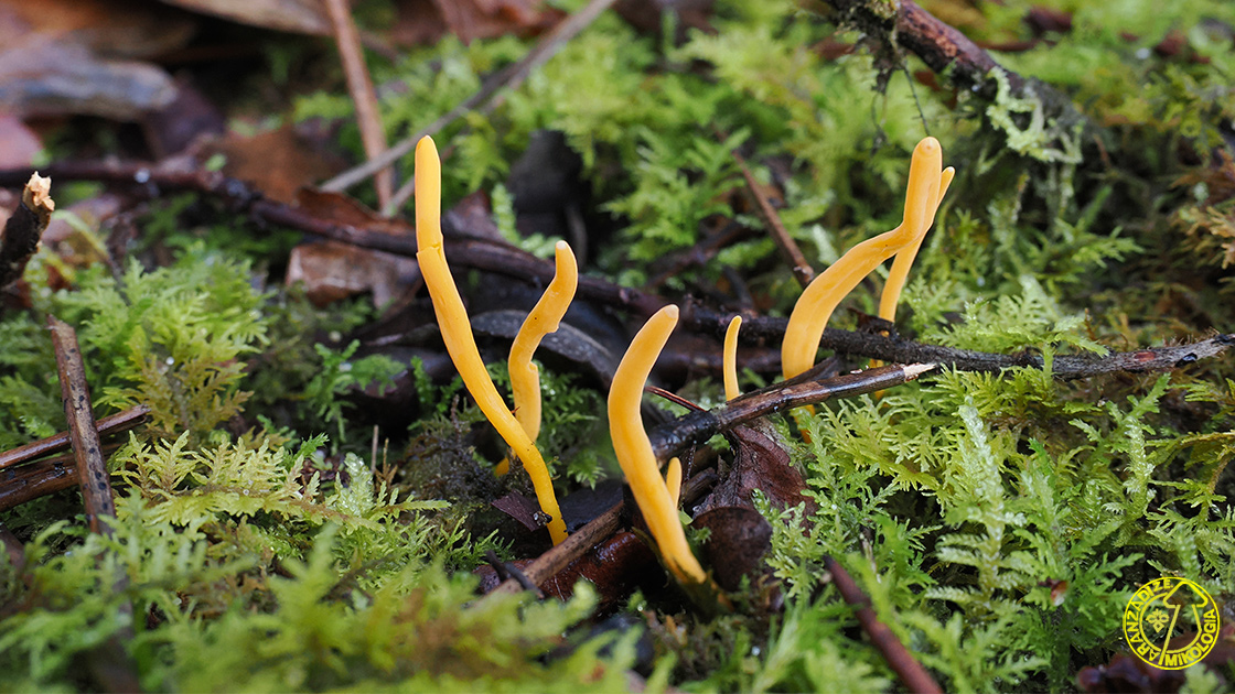 Basidioma: fruitu-gorputz isolatuak edo faszikulatuak, bakunak, 3-6 cm-ko altuera eta 1-3 mm-ko lodierakoak, estutuak oinaldean eta goialdean. Hori zurbiletik hori ilunera edo musurka-horira; punta zurbilak, zurixkak edo zuri berdexkak. Lehortzean tonu okre argia hartzen du.