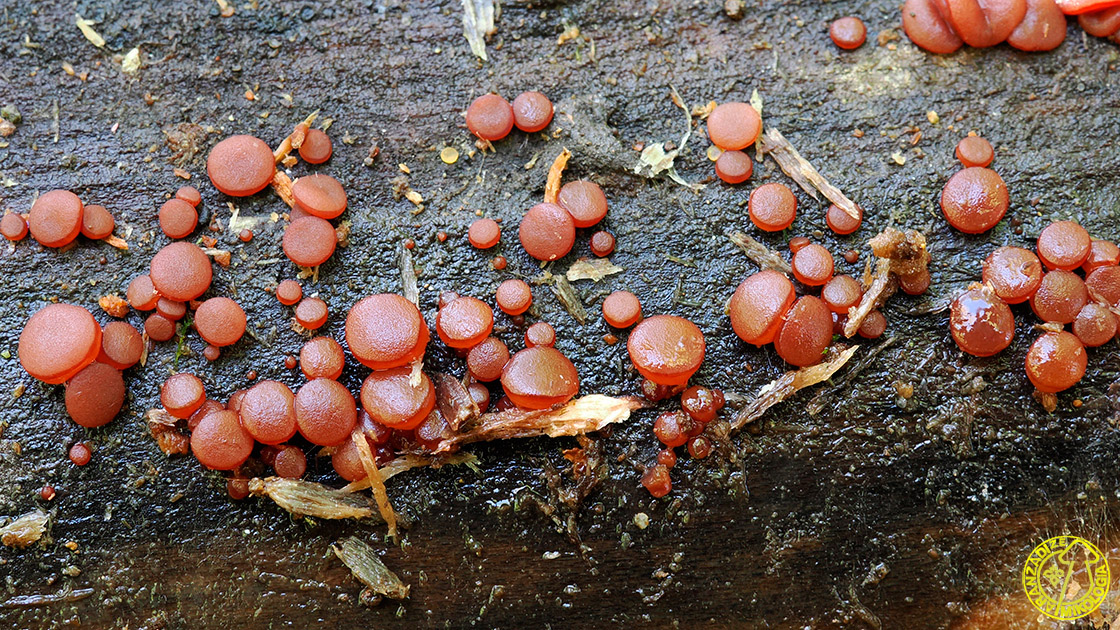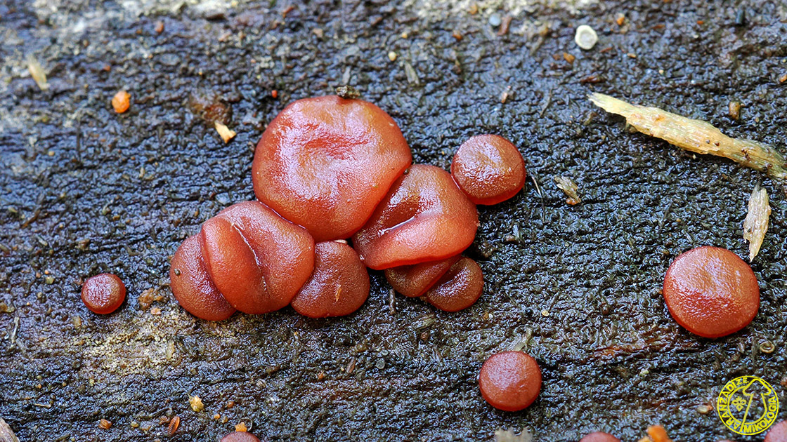 Askoma: fruitu-gorputz hankagabea edo oso hanka motzekoa, isolatua edo taldeka ateratzen dena elkarri estutuak, 0,5-20 mm-ko Ø, forma ugarikoa, hala nola disko, globo, kopa edo titi formakoa. Barruko azala edo himenoforoa laua da edo zertxobait zimurtua zahartzean, haragi-arrosa koloretik ubel-morera. Ertza ilunagoa da eta zenbaitetan kizkurra. Kanpoaldea barrualdea baino argiagoa da, zurixka eta zahidun sotilez estalia lehortzean.