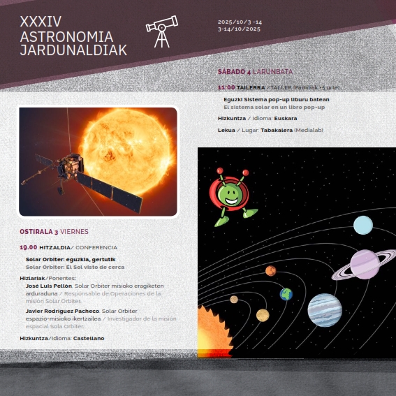 Urriak 3, 19:00, Z Aretoa– Solar Orbiter: eguzkia, gertutik, José Luis Pellón eta Javier Rodríguez Pacheco