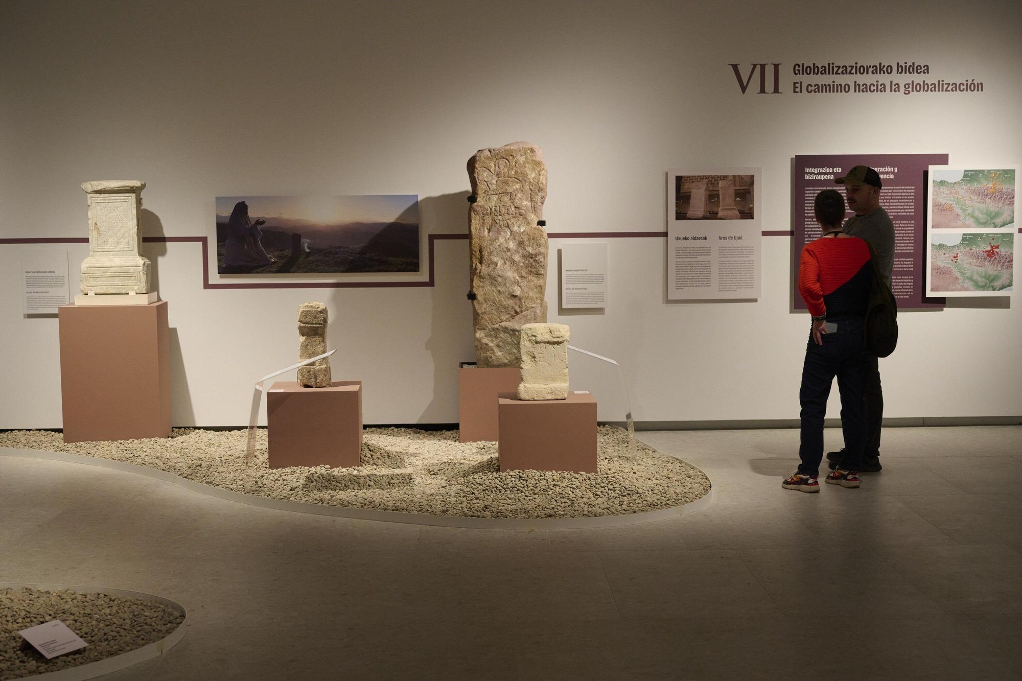 Arlo espiritualean, kultu berriak modu baketsuan bizi izan ziren antzinako sinesmenekin. Erakusketan, halaber, kulturen hibridazio-prozesu horri buruz hitz egiten duten erromatarren aurpegiak eta hilarriak daude ikusgai. Piezak beste museo eta erakunde batzuek laga dituzte. Andrearriagaren hilarria San Telmo Museotik dator, Helasseko Ara, Bibat Museotik (Gasteiz), Herauscorritseheko Ara, Atharratzeko Udaletik, Hazparneko hilarria Ipar Euskal Herriko herritik eta Mugarriluzeko miliarioak Auritzberri-Espinaletik.