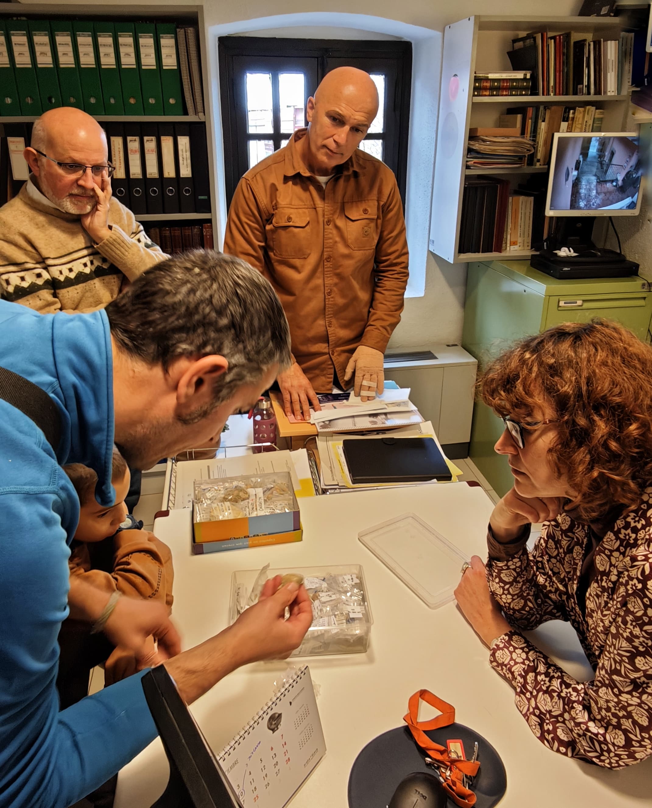 El acto de depósito tuvo lugar en la Torre de doña Otxanda, sede del Museo de Ciencias Naturales de Álava, y contó con la participación de su responsable, María Ruiz de Olano; el geólogo y museólogo Carmelo Corral; los miembros de Aranzadi Joxeba e Izei Larrañaga; así como Jose Vilchez y Alberto Labrador.